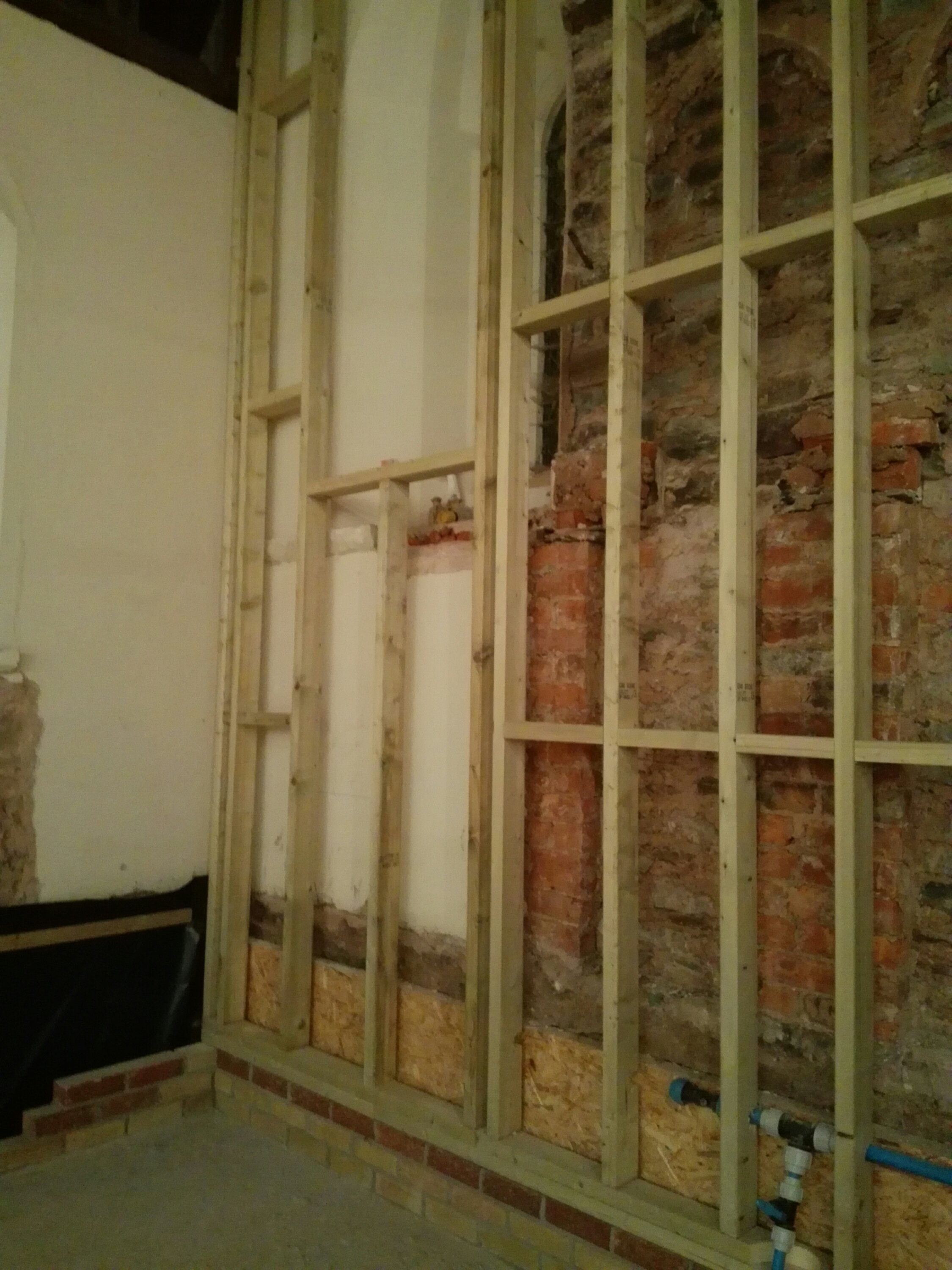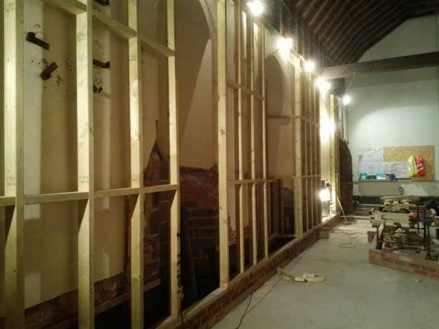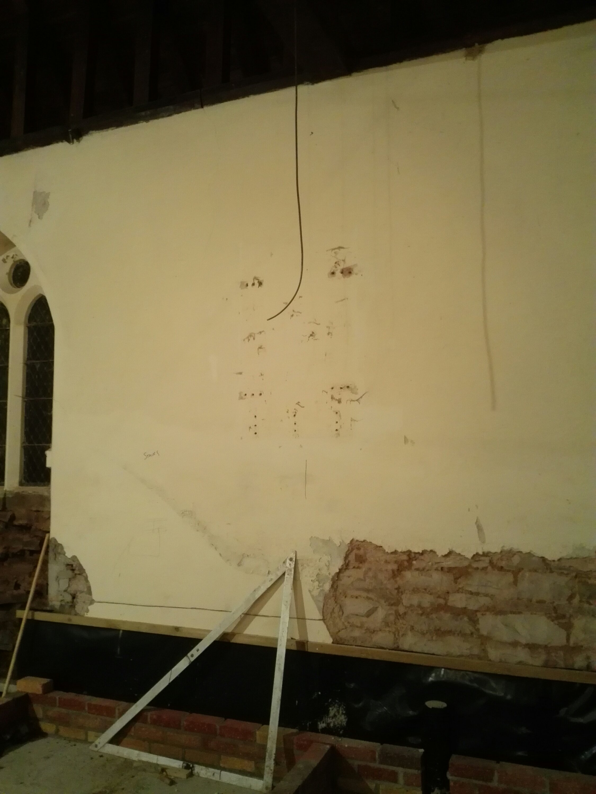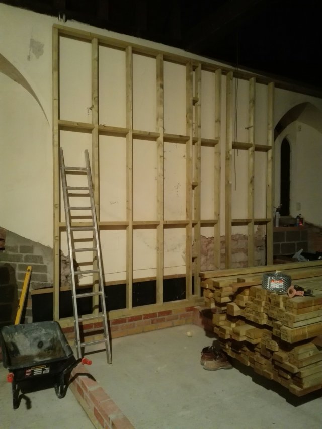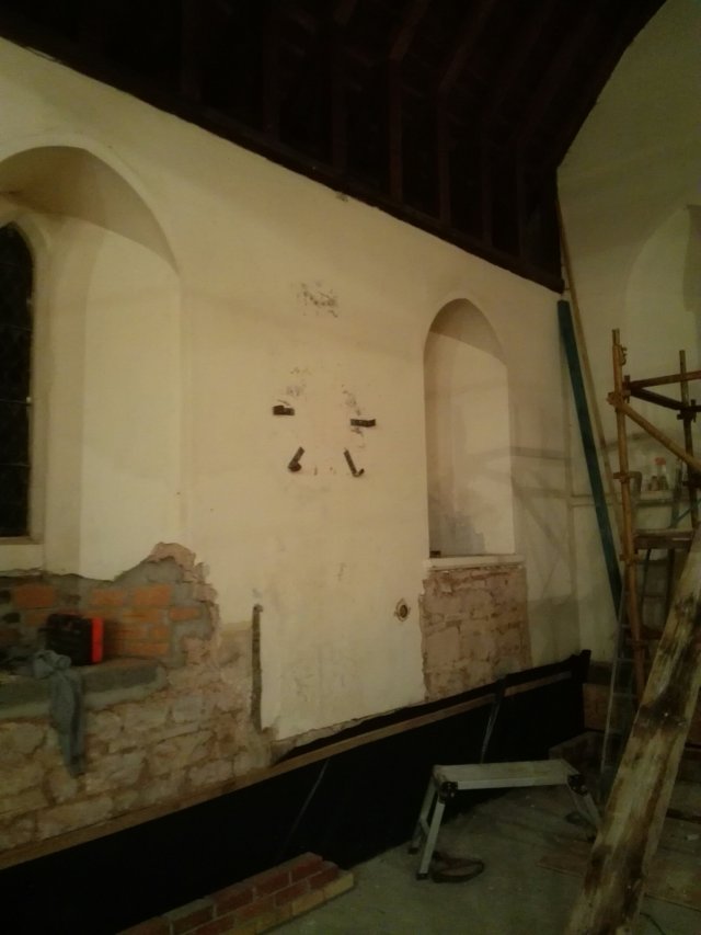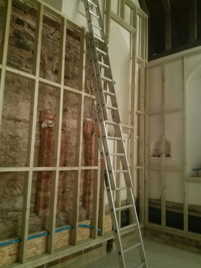 The last of the ecclesiastical features remaining on the walls have been removed, it is a shame to lose some of these features, but everything has to be wrapped in 100mm of insulation, so unfortunately they were never going to be seen. We now need to see how they can be used to enhance the project later down the line; or failing that, sold to pay off our debts!!!