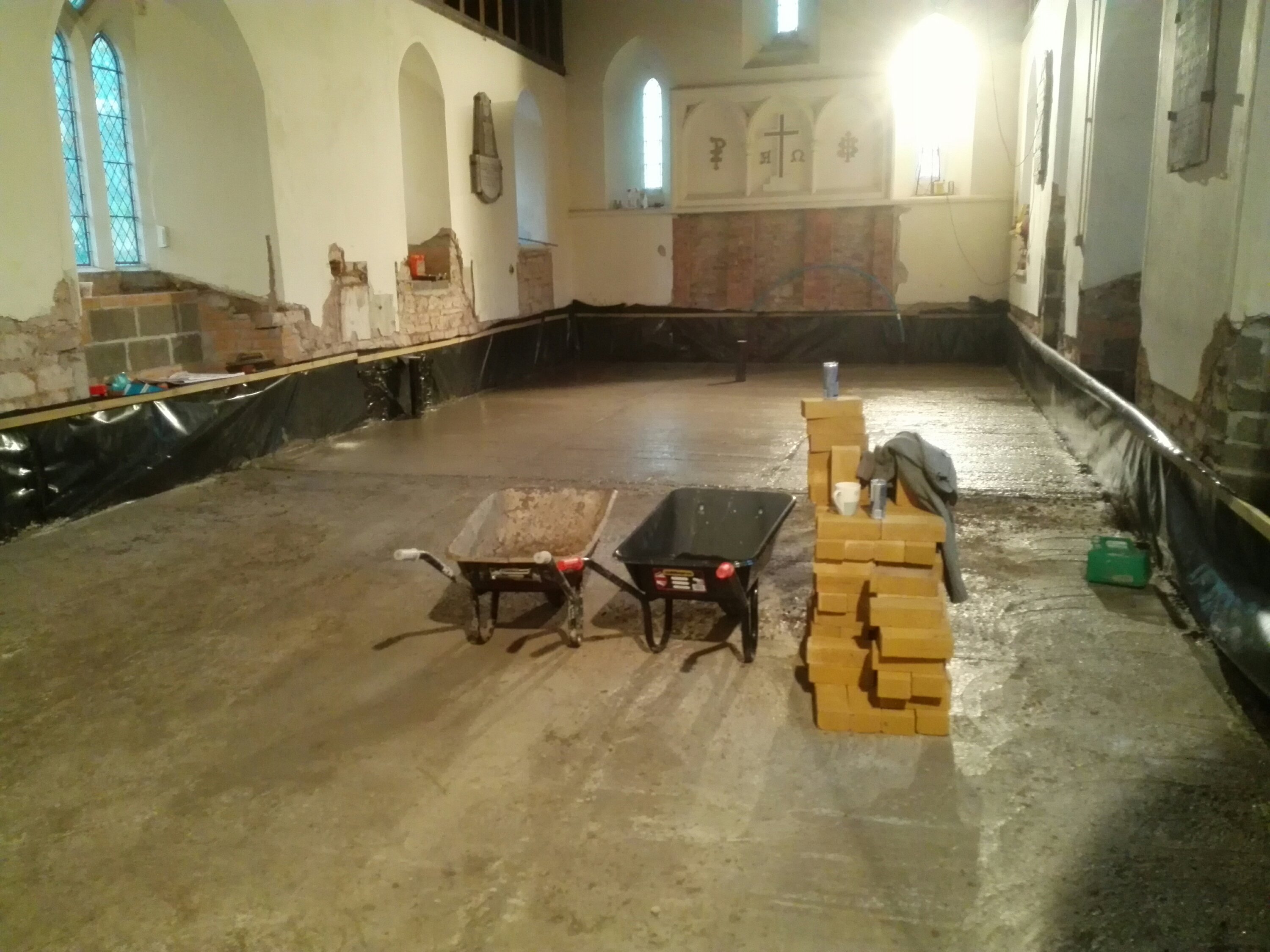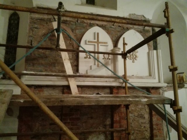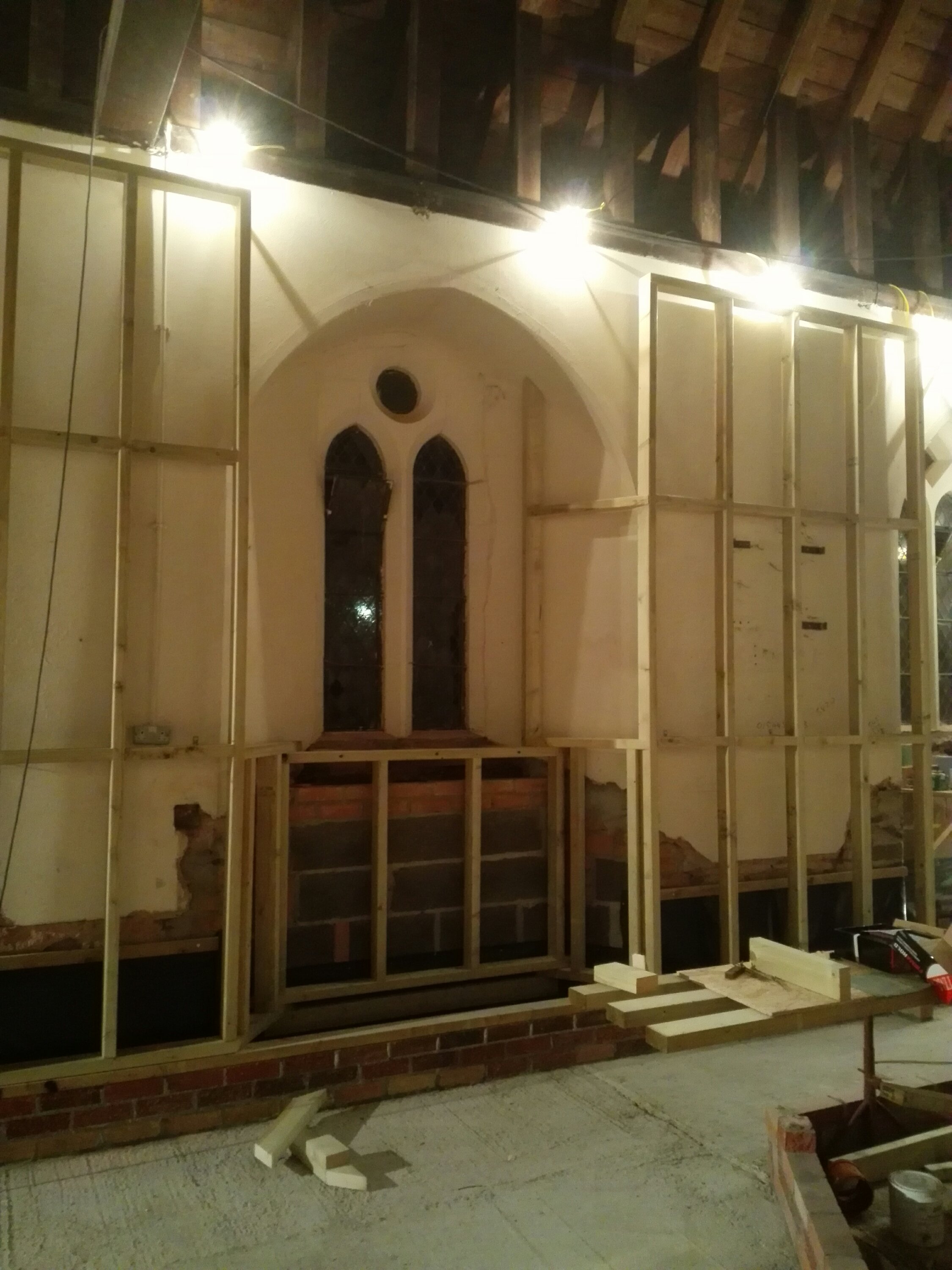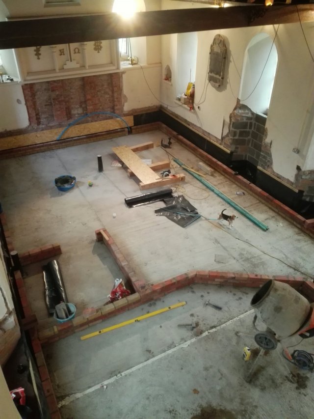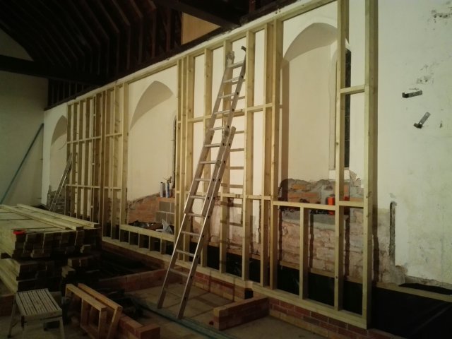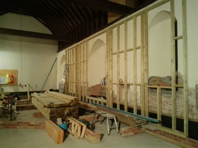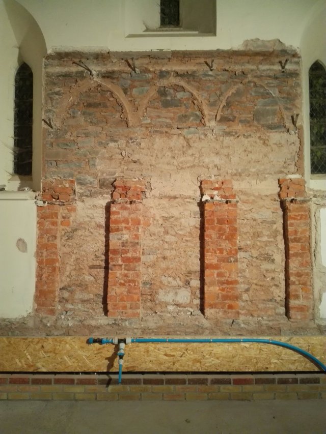 The last of the ecclesiastical features remaining on the walls have been removed, it is a shame to lose some of these features, but everything has to be wrapped in 100mm of insulation, so unfortunately they were never going to be seen. We now need to see how they can be used to enhance the project later down the line; or failing that, sold to pay off our debts!!!