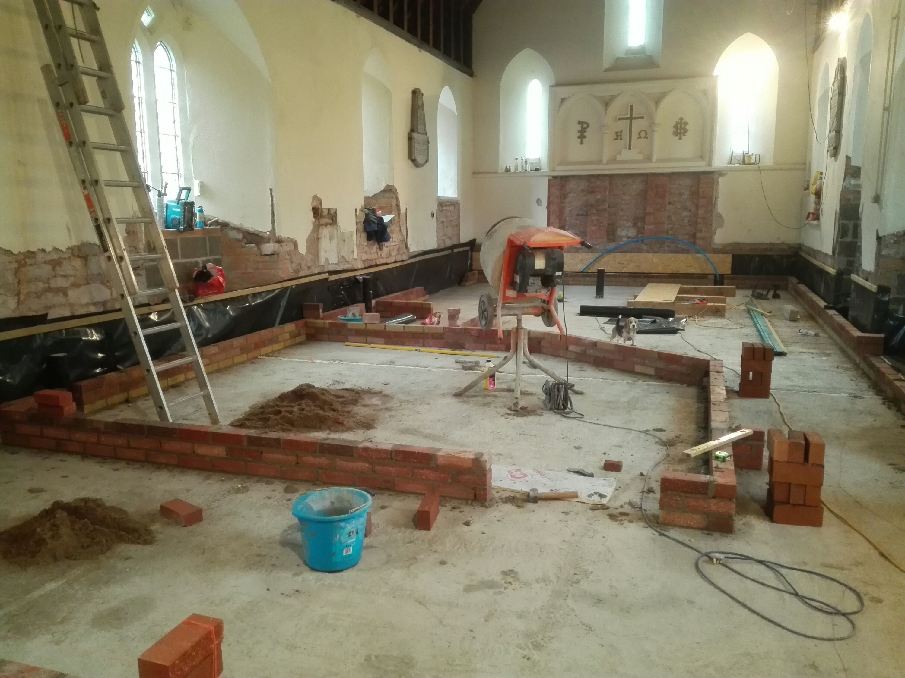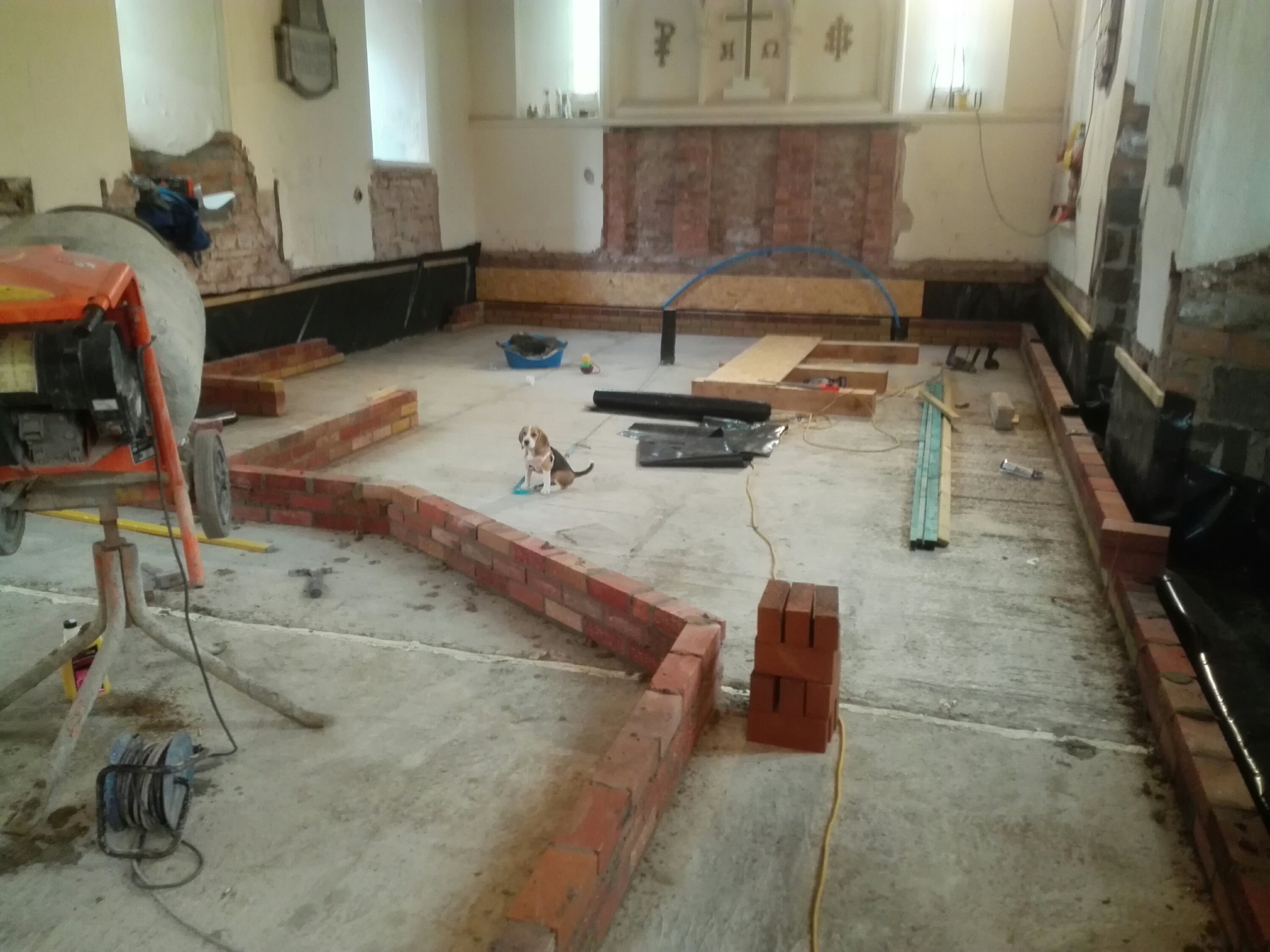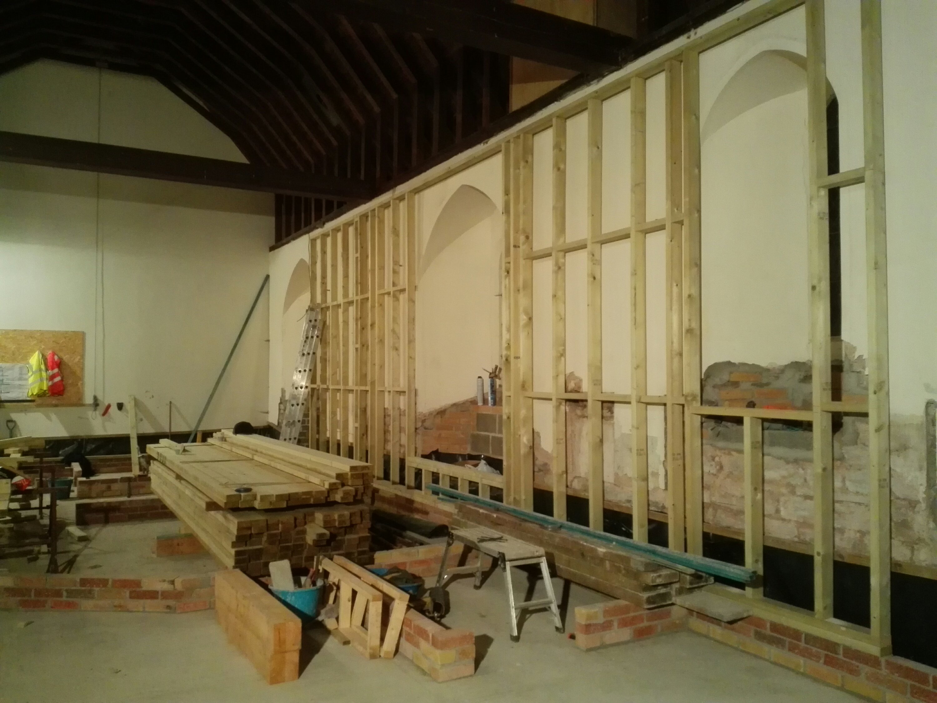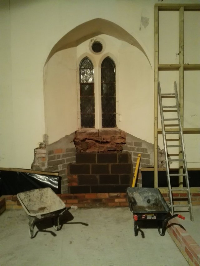 The last of the ecclesiastical features remaining on the walls have been removed, it is a shame to lose some of these features, but everything has to be wrapped in 100mm of insulation, so unfortunately they were never going to be seen. We now need to see how they can be used to enhance the project later down the line; or failing that, sold to pay off our debts!!!
